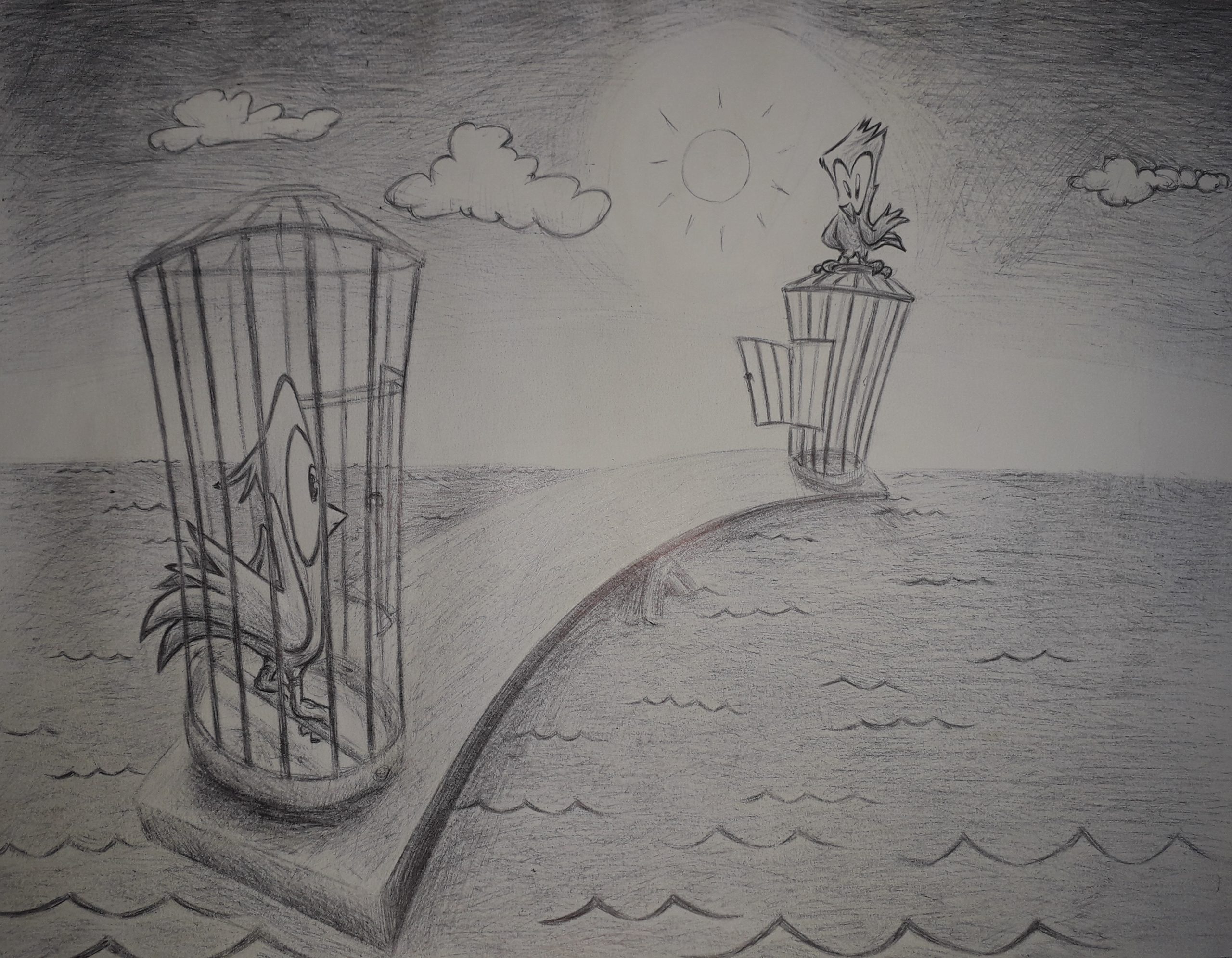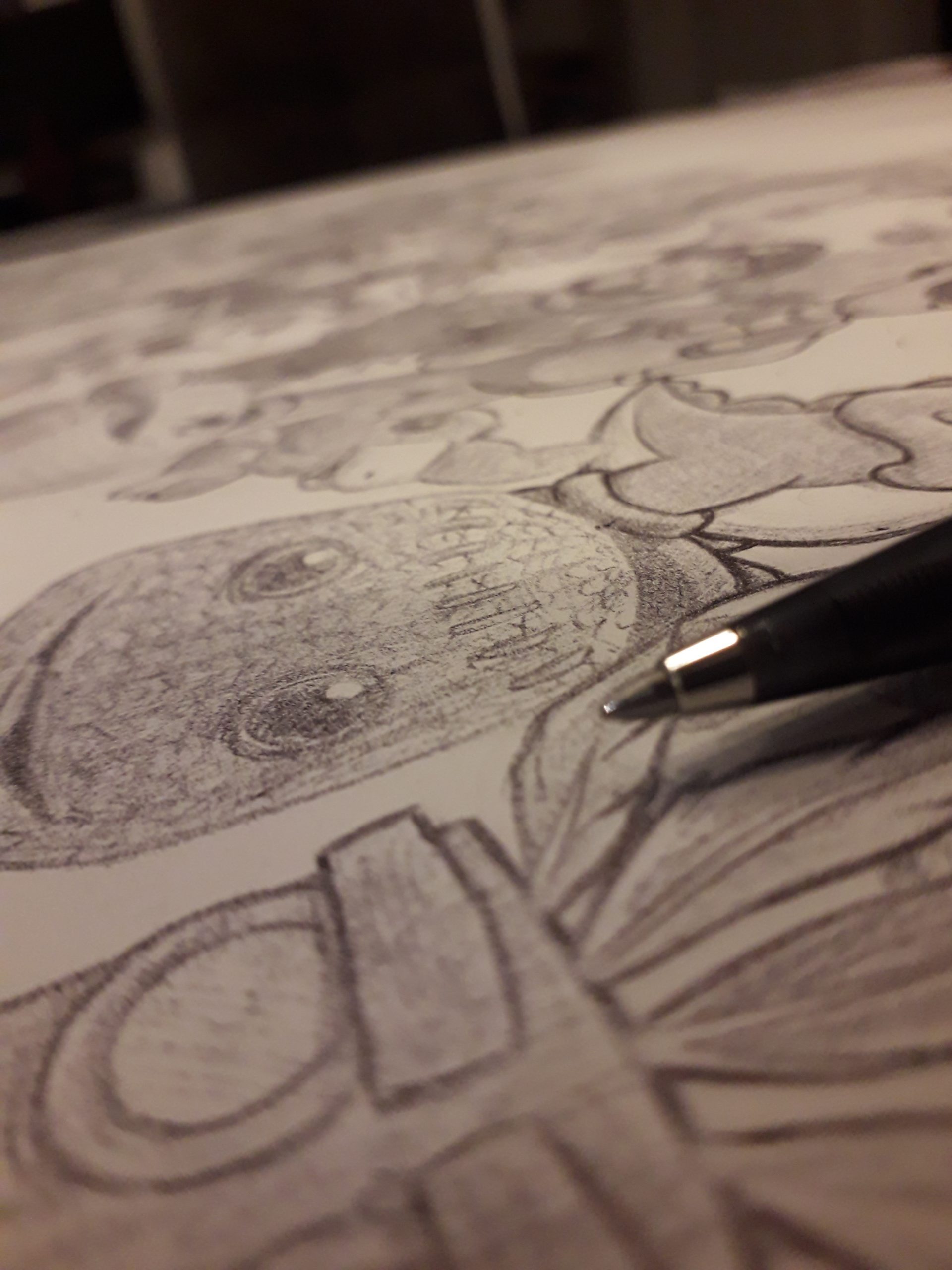 mit Bleistift vorskizziert und mit drei Kugelschreibern in nur etwa 100 Stunden fertiggemalt.